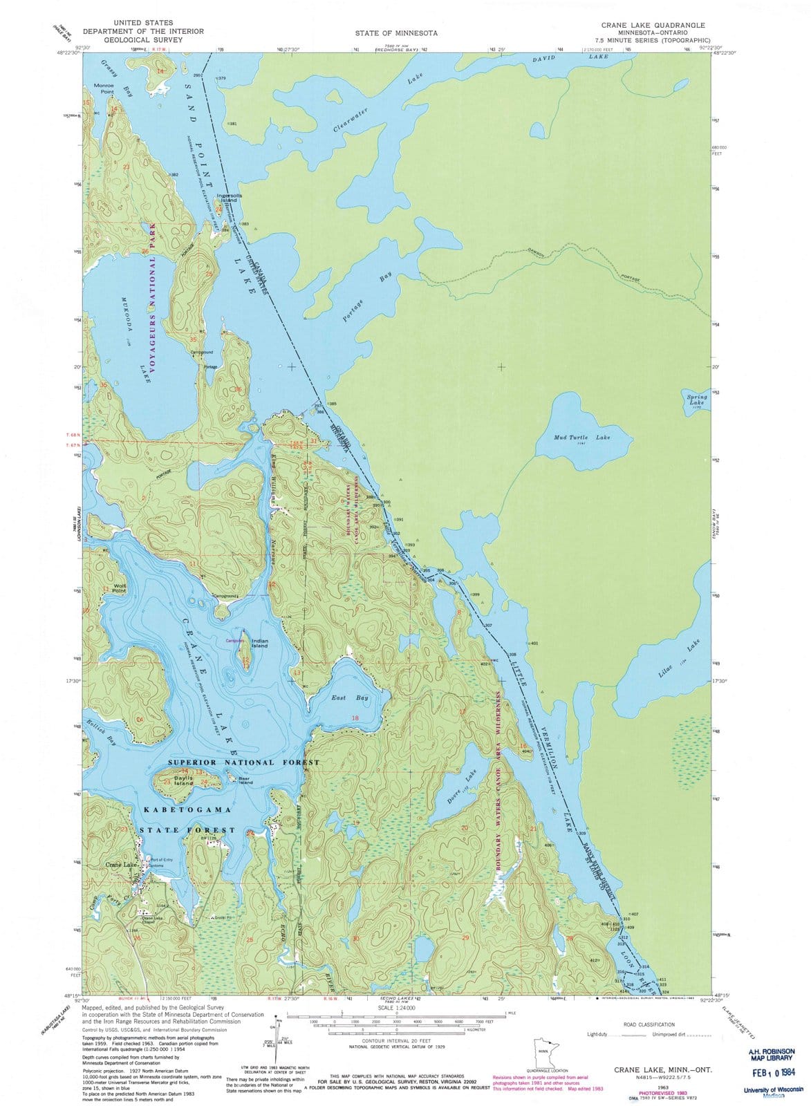• 1963 Crane Lake, MN - Minnesota - USGS Topographic Map