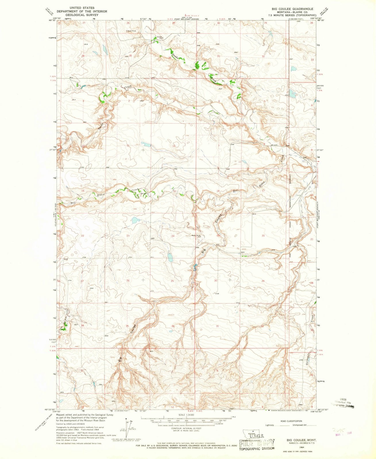 1964 Big Coulee, MT - Montana - USGS Topographic Map