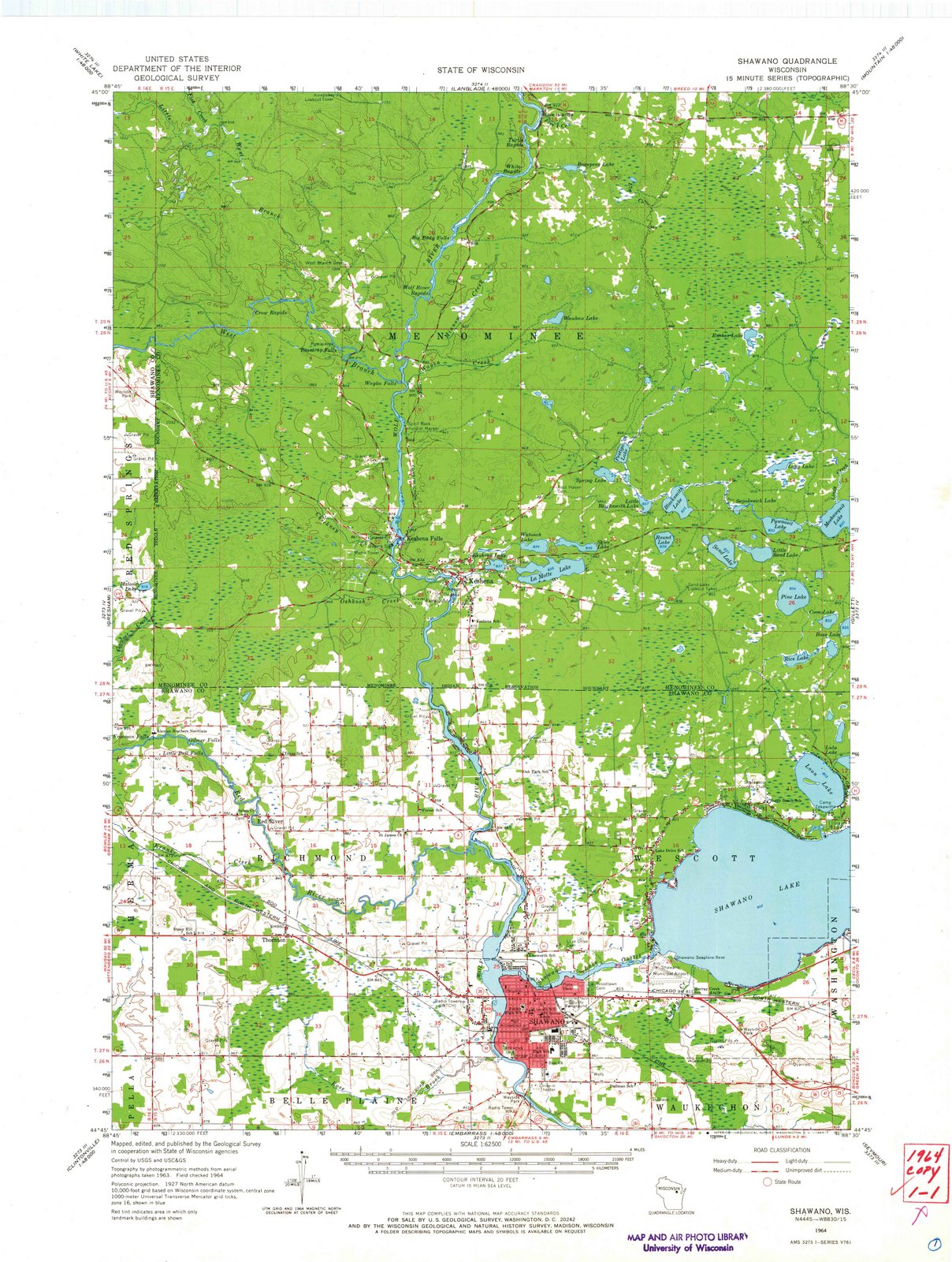 1964 Shawano, WI - Wisconsin - USGS Topographic Map