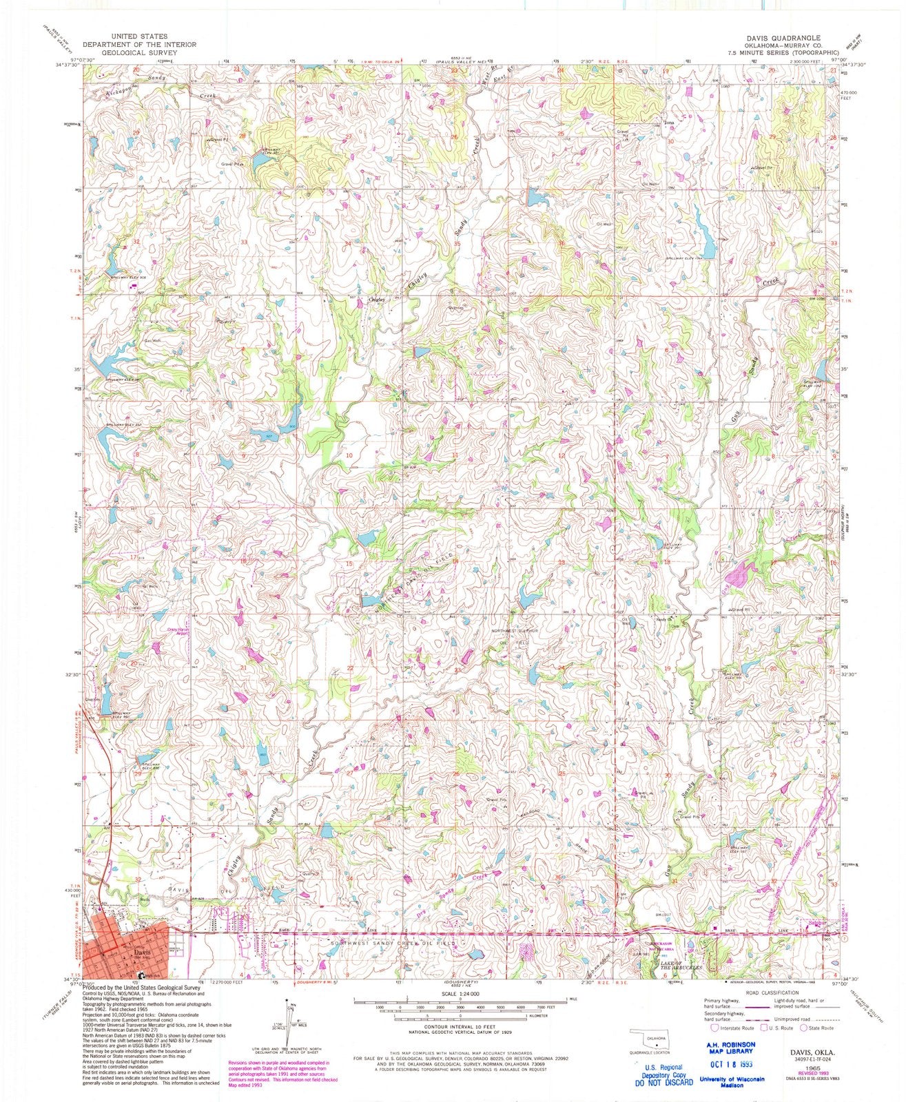 1965 Davis, OK - Oklahoma - USGS Topographic Map