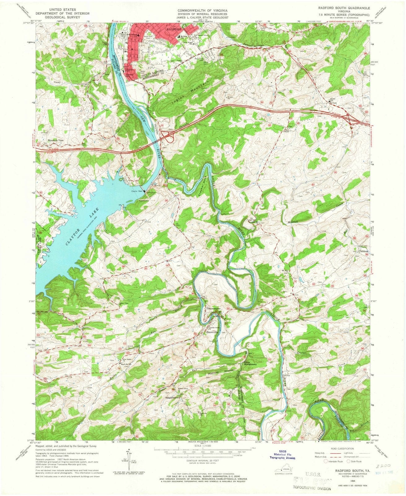 1965 Radford, VA - Virginia - USGS Topographic Map v2