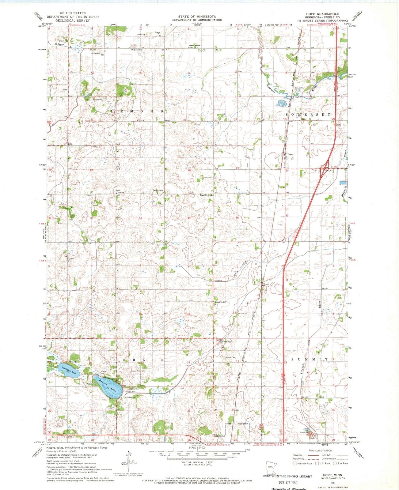 1967 Hope, MN - Minnesota - USGS Topographic Map