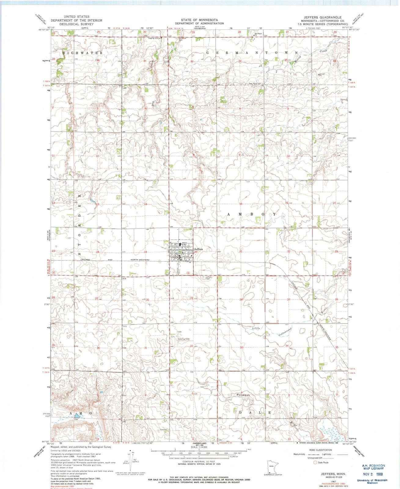 1967 Jeffers, MN - Minnesota - USGS Topographic Map