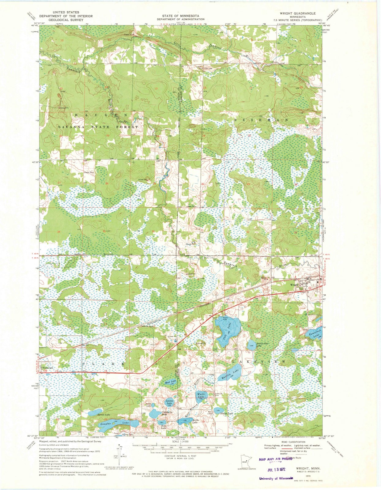 1970 Wright, MN - Minnesota - USGS Topographic Map