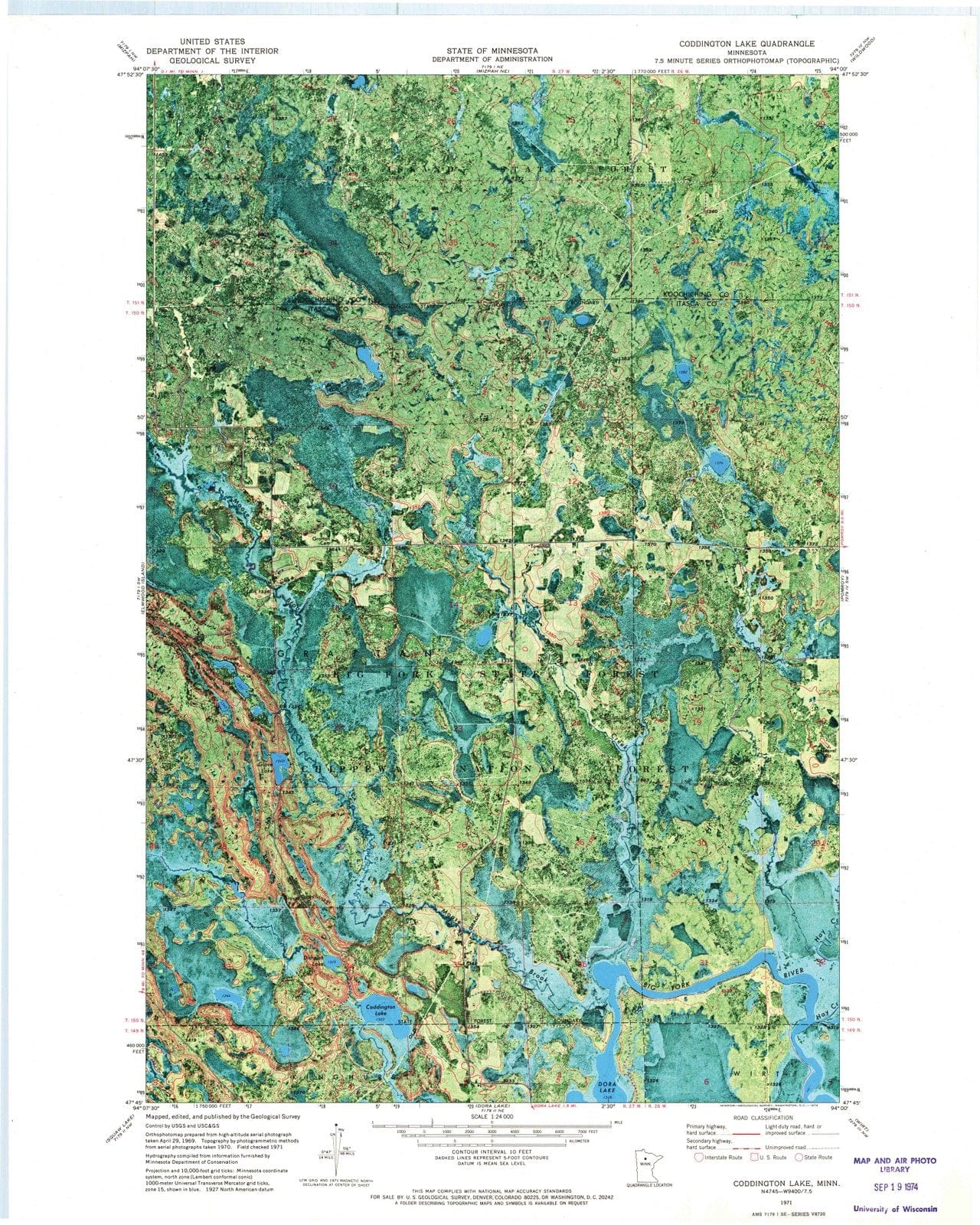 1971 Coddington Lake, MN - Minnesota - USGS Topographic Map
