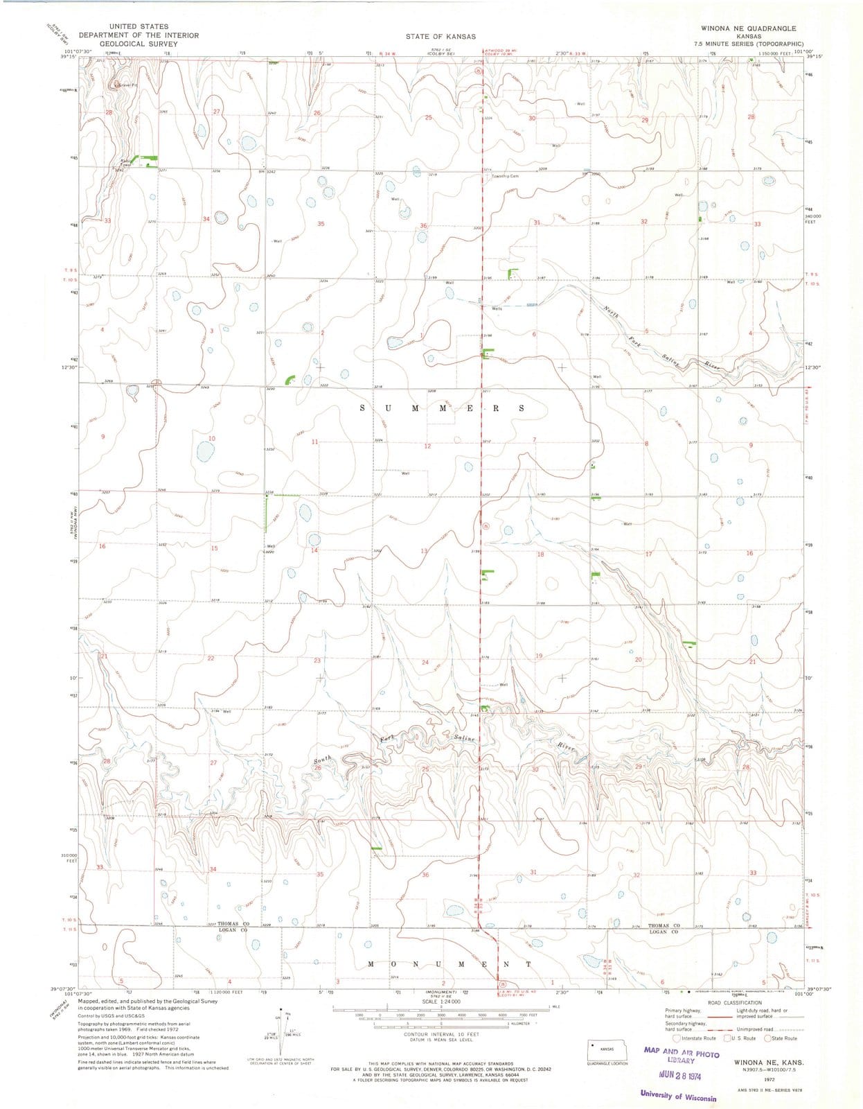 1972 Winona, KS - Kansas - USGS Topographic Map v2
