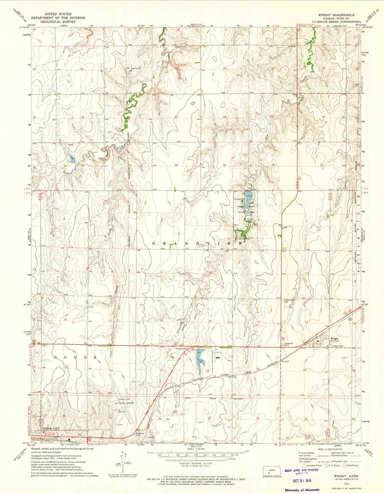 1972 Wright, KS - Kansas - USGS Topographic Map