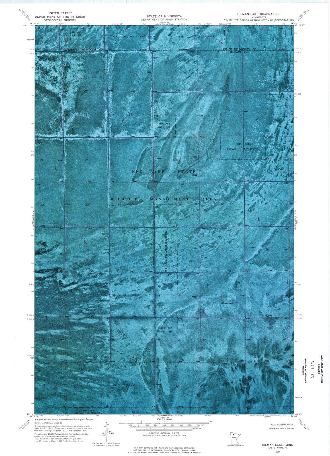 • 1974 Hilman Lake, MN - Minnesota - USGS Topographic Map