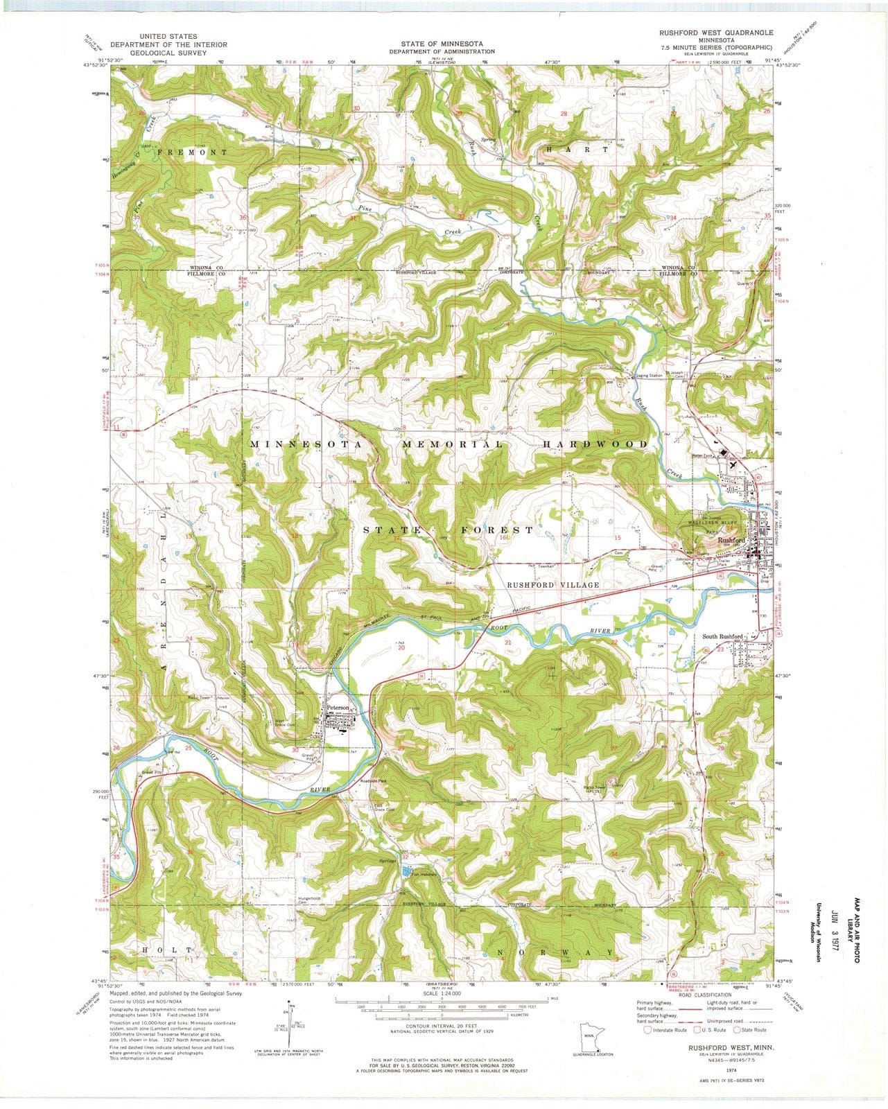 1974 Rushford West, MN - Minnesota - USGS Topographic Map