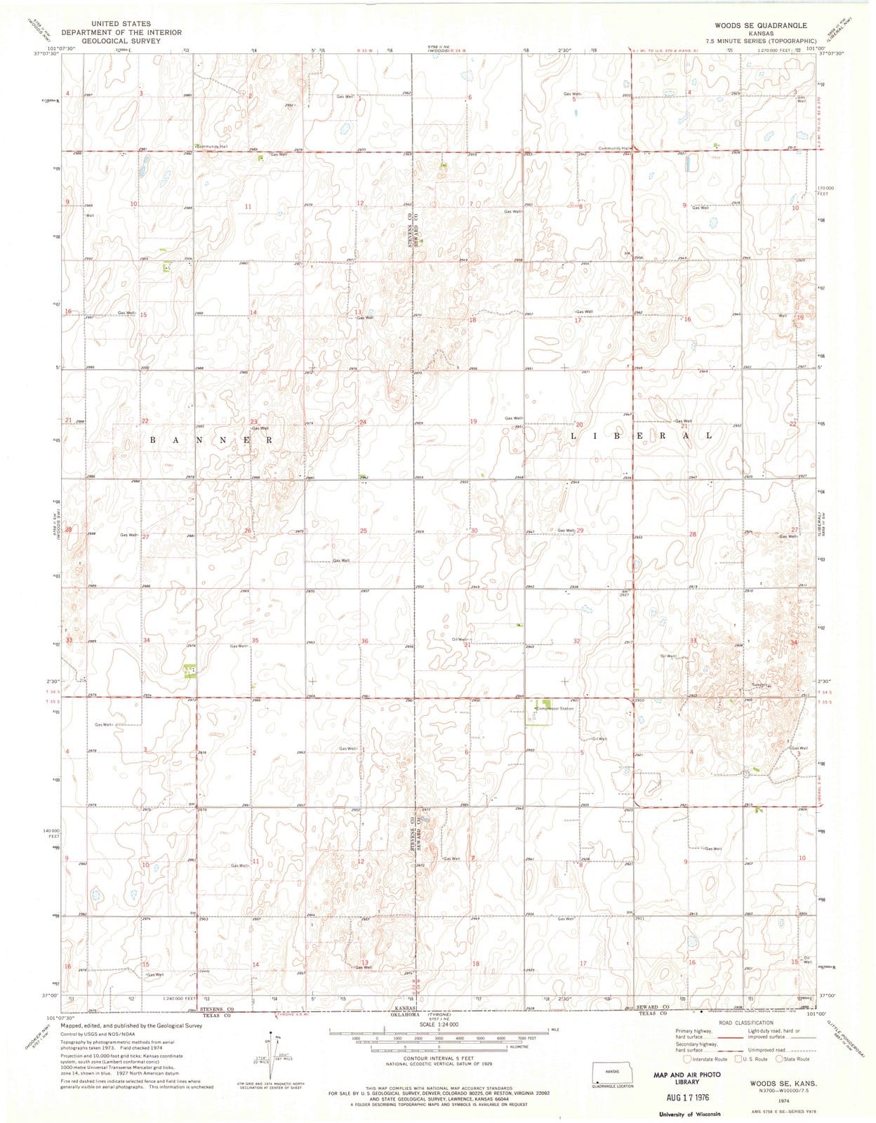 1974 Woods, KS - Kansas - USGS Topographic Map v2
