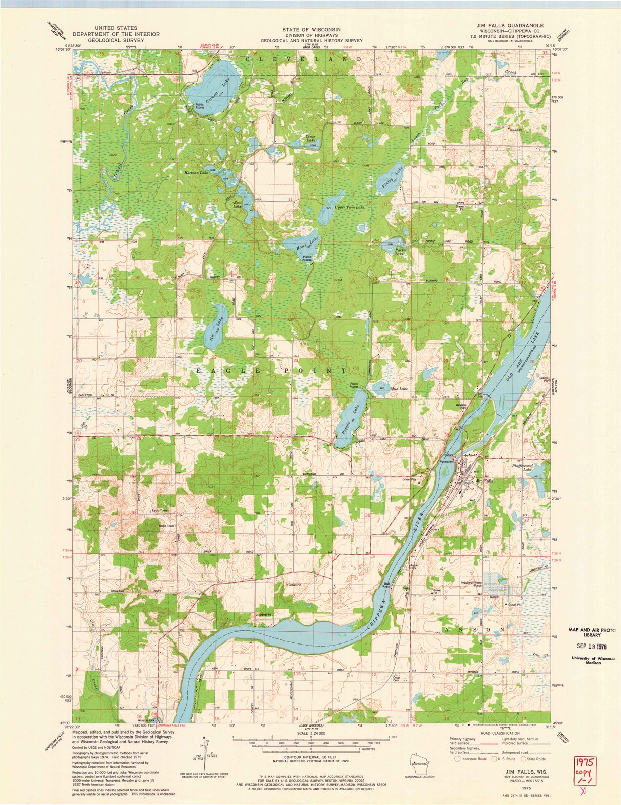 1975 Jim Falls, WI - Wisconsin - USGS Topographic Map