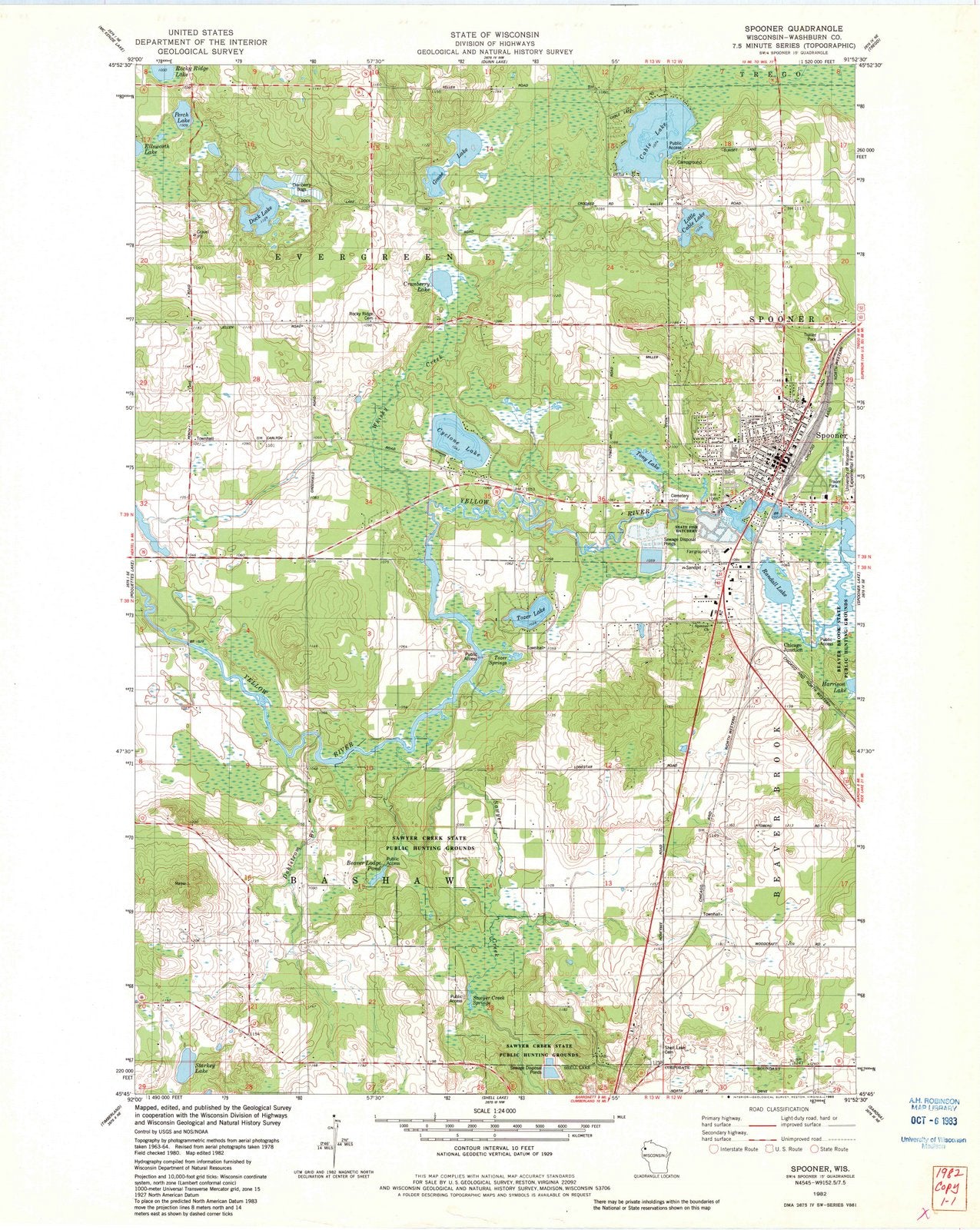 1982 Spooner, WI - Wisconsin - USGS Topographic Map