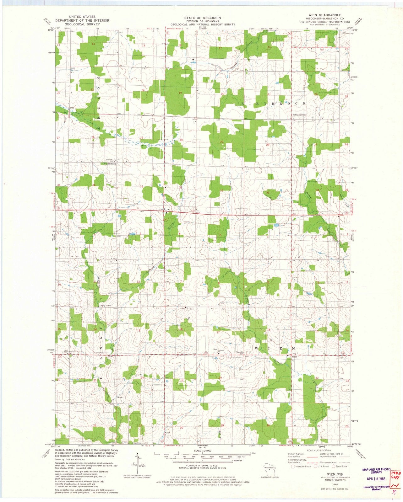 • .1982 Wien, WI - Wisconsin - USGS Topographic Map