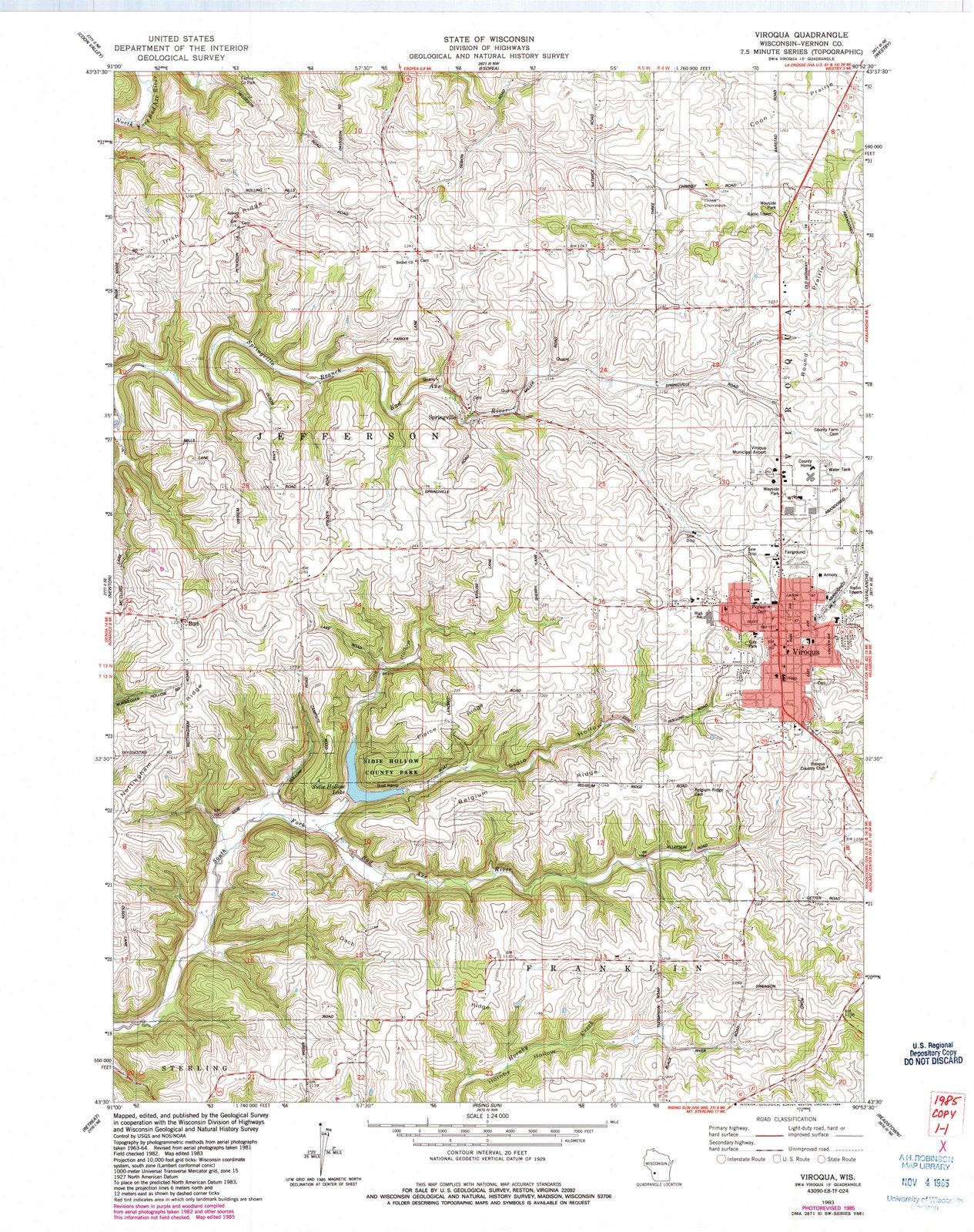 • 1983 Viroqua, WI - Wisconsin - USGS Topographic Map
