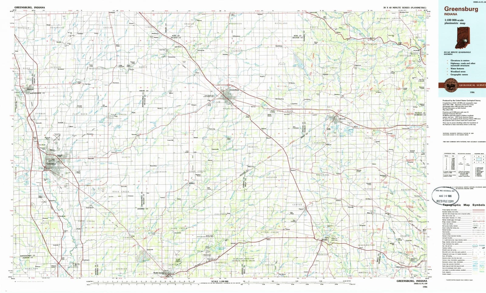 1986 Greensburg, in - Indiana - USGS Topographic Map