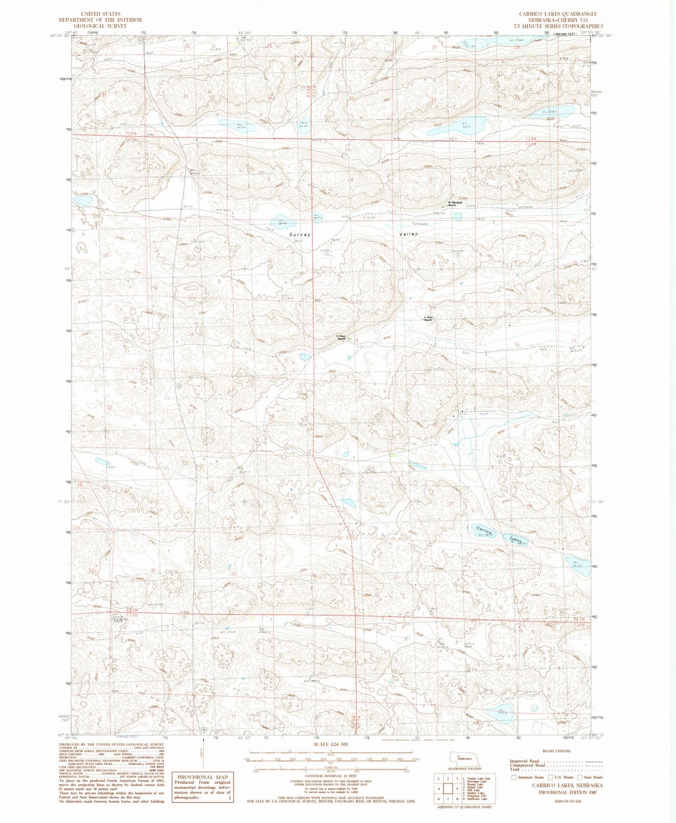1987 Carrico Lakes, NE - Nebraska - USGS Topographic Map
