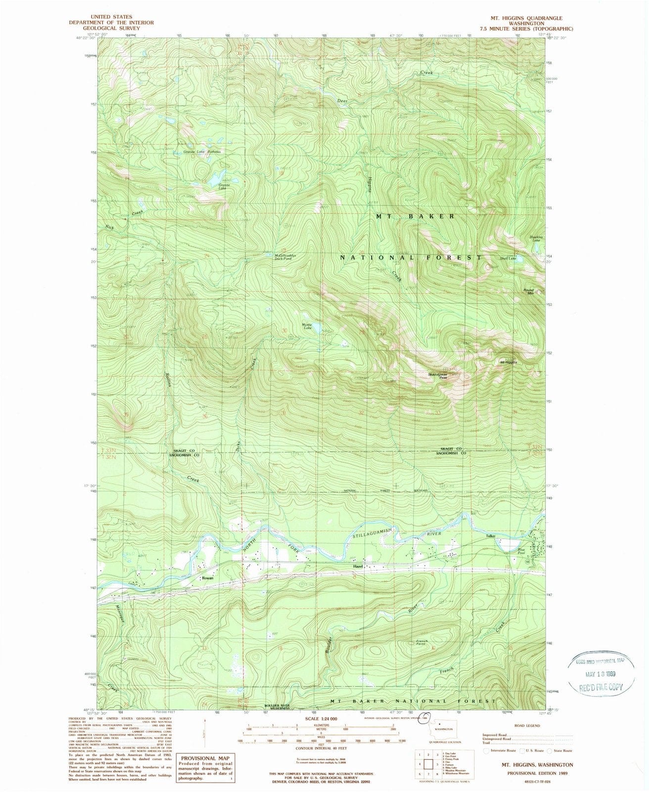 1989 Mt Higgins, WA - Washington - USGS Topographic Map