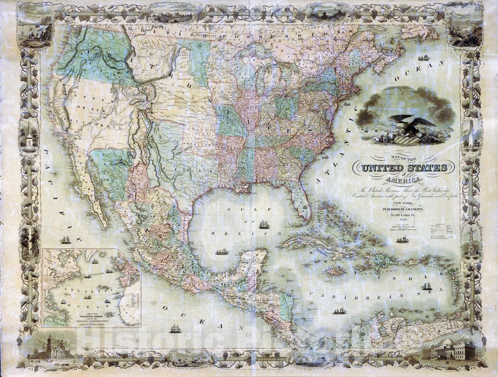 Historic 1849 Map - Map of The United States of America, The British Provinces, Mexico, The West Indies and Central America, with Part of New Granada and Venezuela