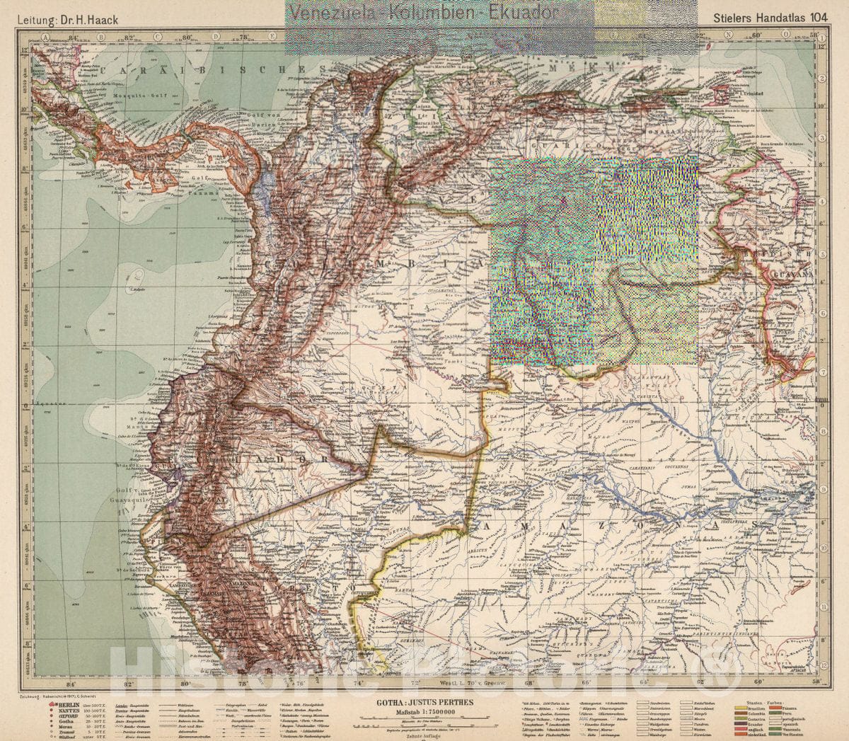 Historic Map : Columbia, 104. Venezuela - Kolumbien - Ekuador. Columbia - Ecuador, 1925 Atlas , Vintage Wall Art