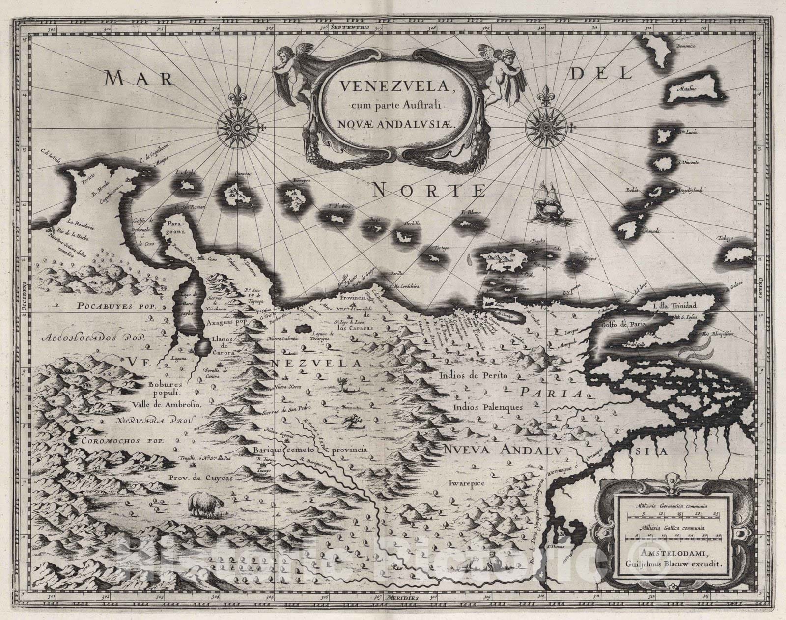 Historic Wall Map : Venezuela, 1630 Venezuela cum parte Australi Novae Andalusiae. , Vintage Wall Art