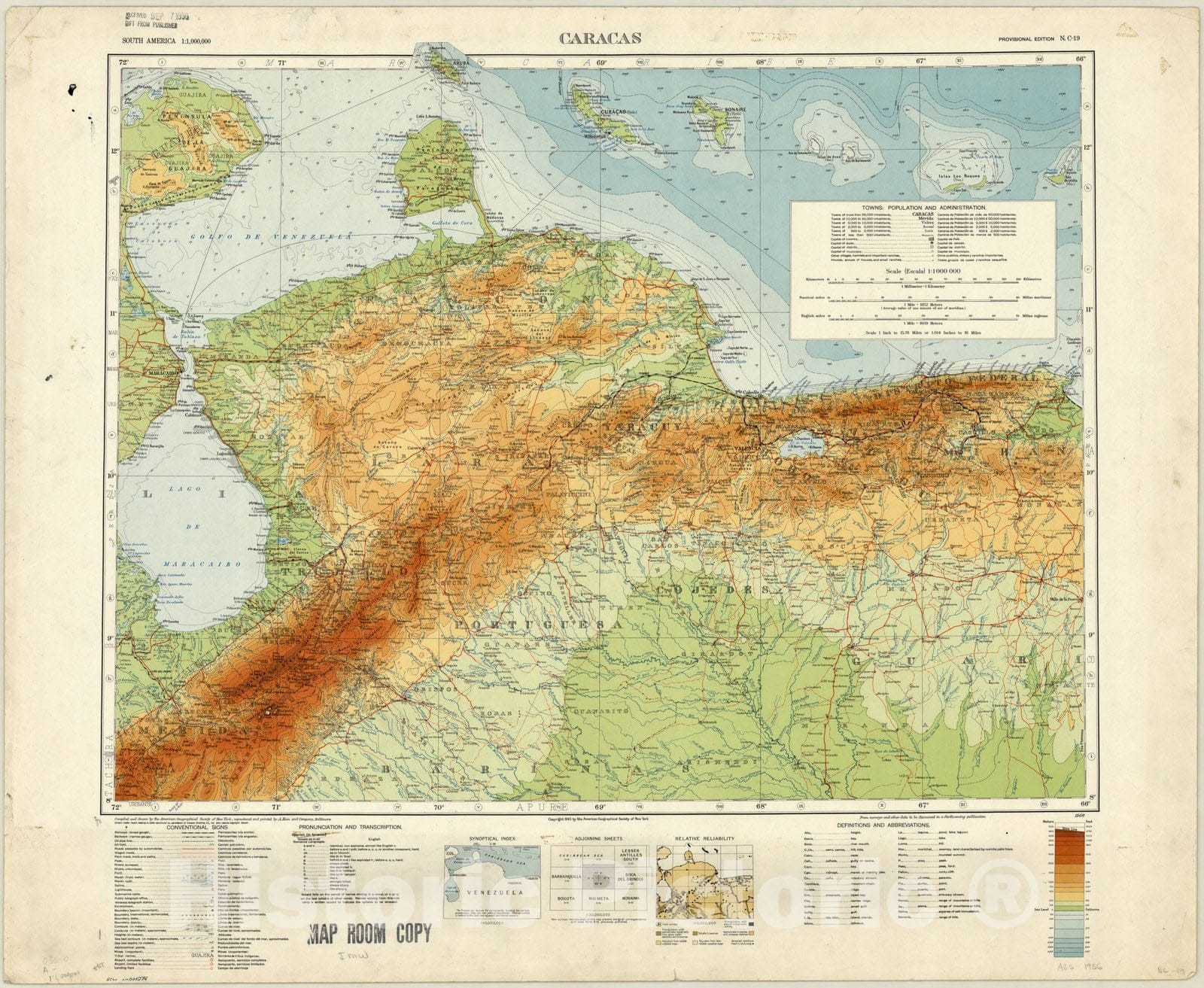 • Map : Caracas, Venezuela 1956, South American 1:1,000,000. Caracas , Antique Vintage Reproduction