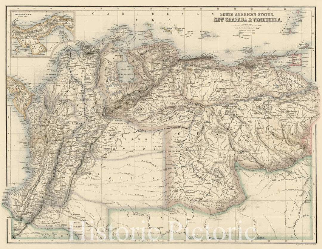 Historic Map - South American States. New Granada & Venezuela, 1855, Archibald Fullarton & Co. - Vintage Wall Art