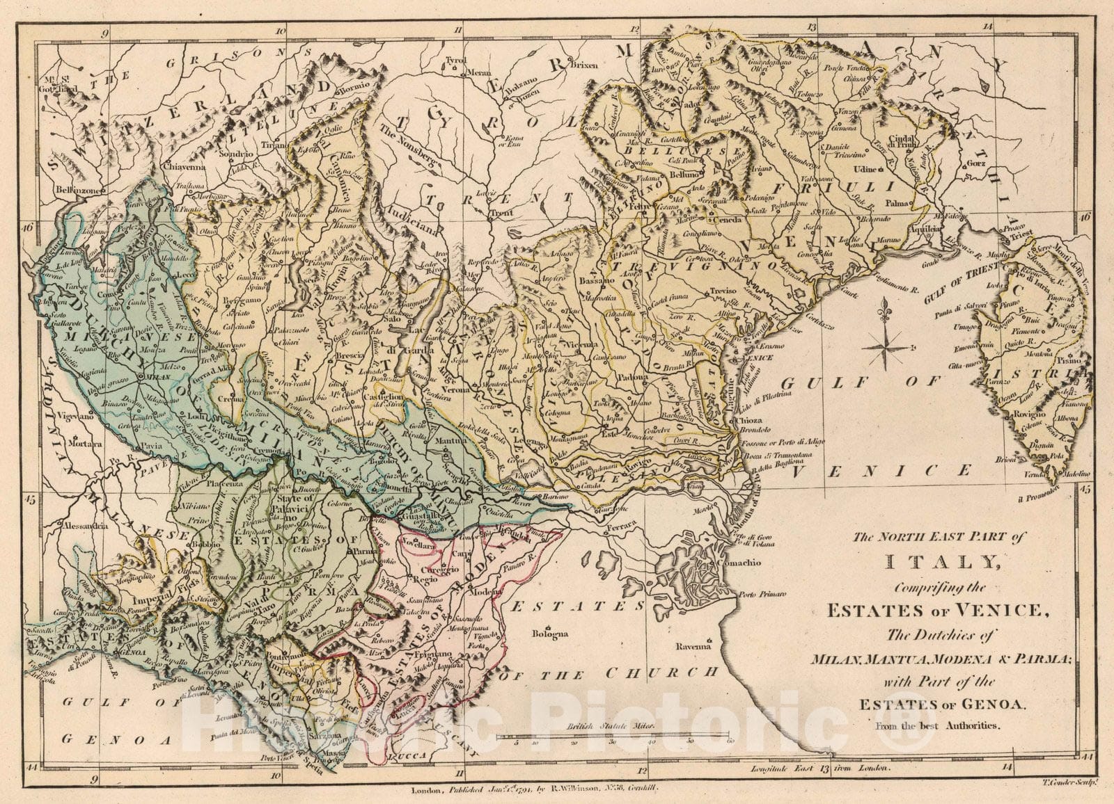 • .Historic Map : 1794 The North East Part of Italy Comprising the Estates of Venice. - Vintage Wall Art