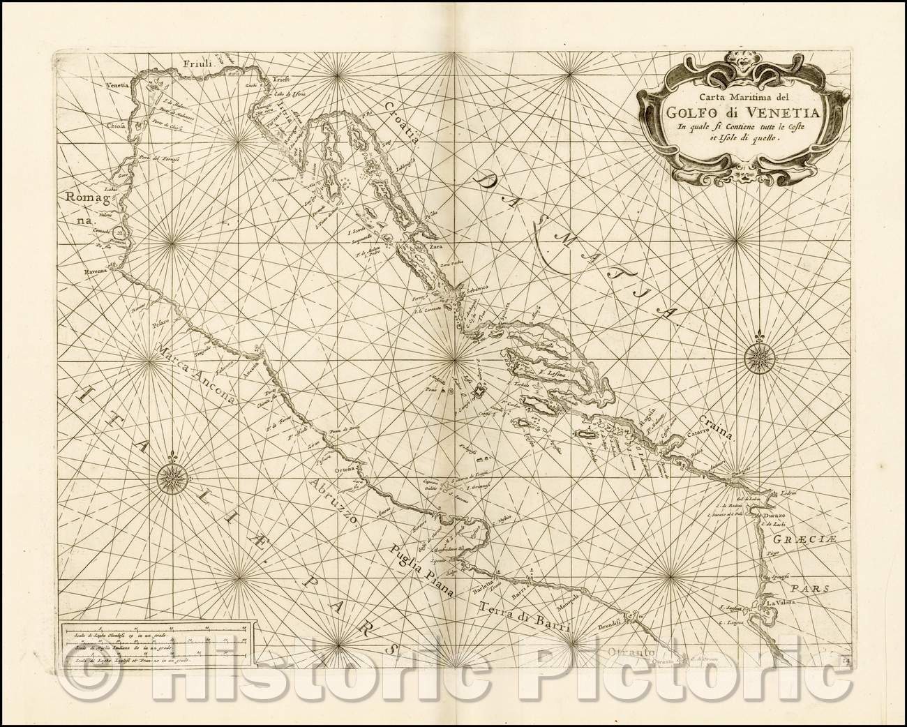 • .Historic Map - Carta Maritima del Golfo di Venetia In quale si Contiene tutte/Chart of the Gulf of Venice and Northern Part of the Adriatic Sea, 1695 - Vintage Wall Art
