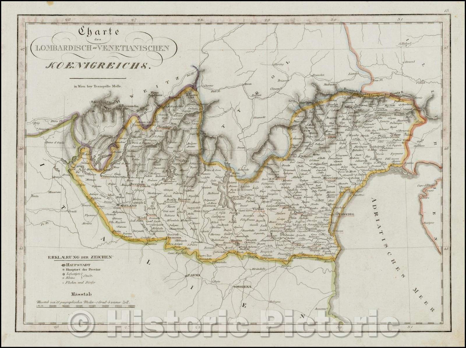 • .Historic Map - Charte des Lombardisch-Venetianischen Koenigreichs/Regional Map of the Kingdoms of Lombardy and Venice, 1800, Tranquillo Mollo - Vintage Wall Art