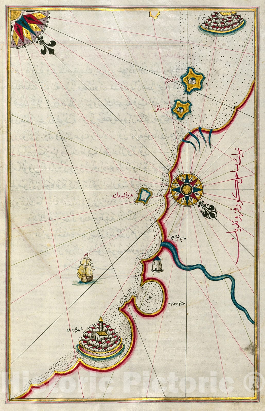 • Historic Map : fol. 183b Coastline from Marano to Caorle in the province of Venice, 1700, Vintage Wall Decor