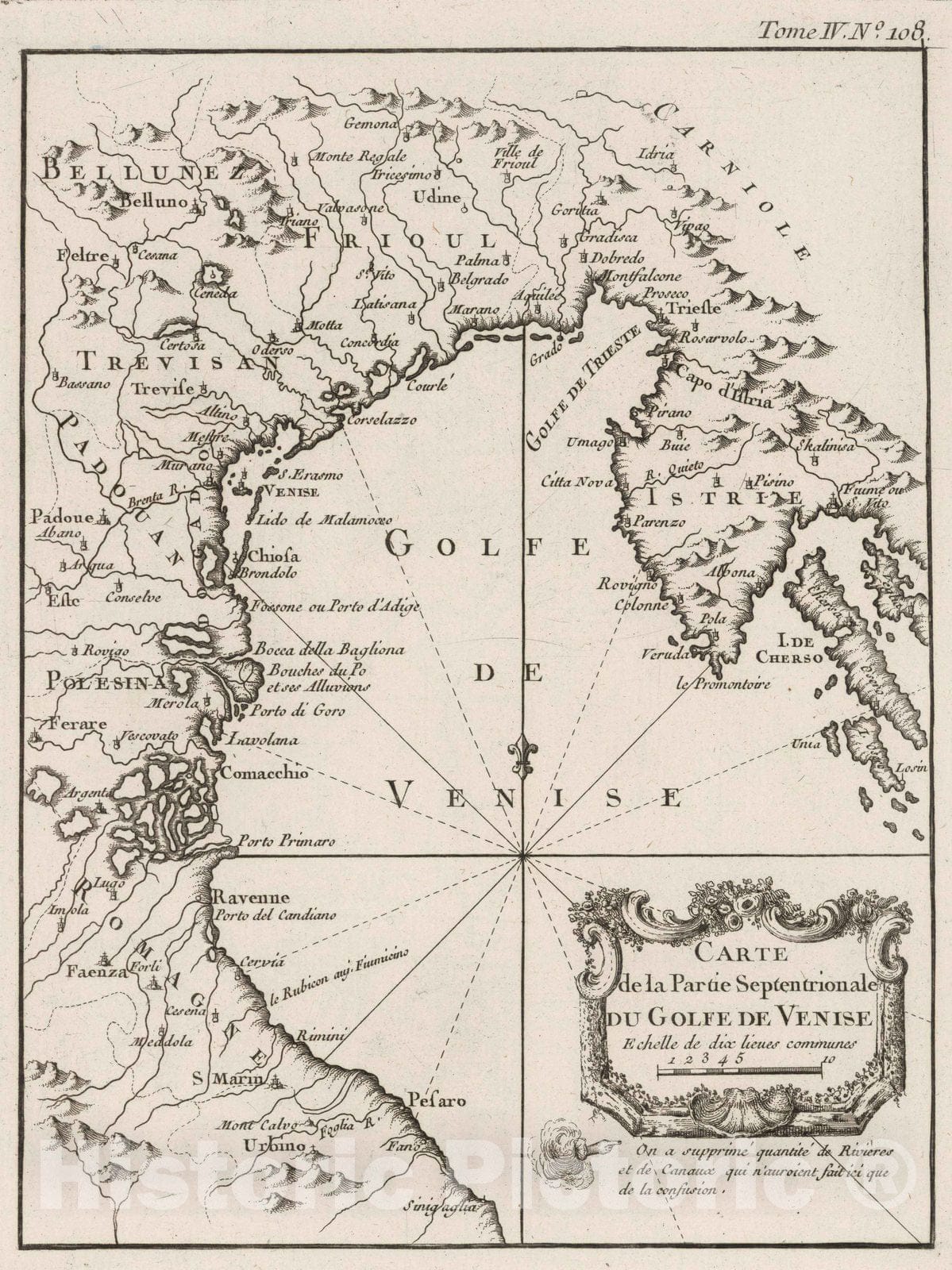 Historic Map : Italy, Venice Region (Italy) 1764 Carte de la partie septentrionale du golfe de Venise. , Vintage Wall Art
