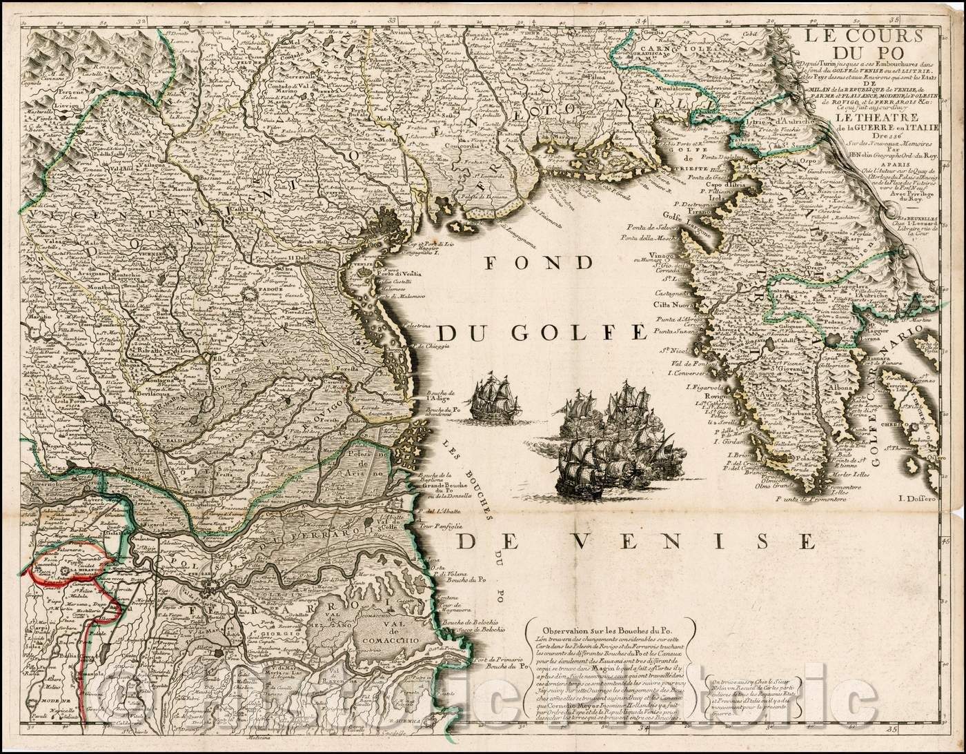 Historic Map - Le Cours Du Po [Eastern Sheet-Gulf of Venice, Padua, Vincenz, Feltre, Friouli, Carniola, Istria], 1700, Jean-Baptiste Nolin - Vintage Wall Art