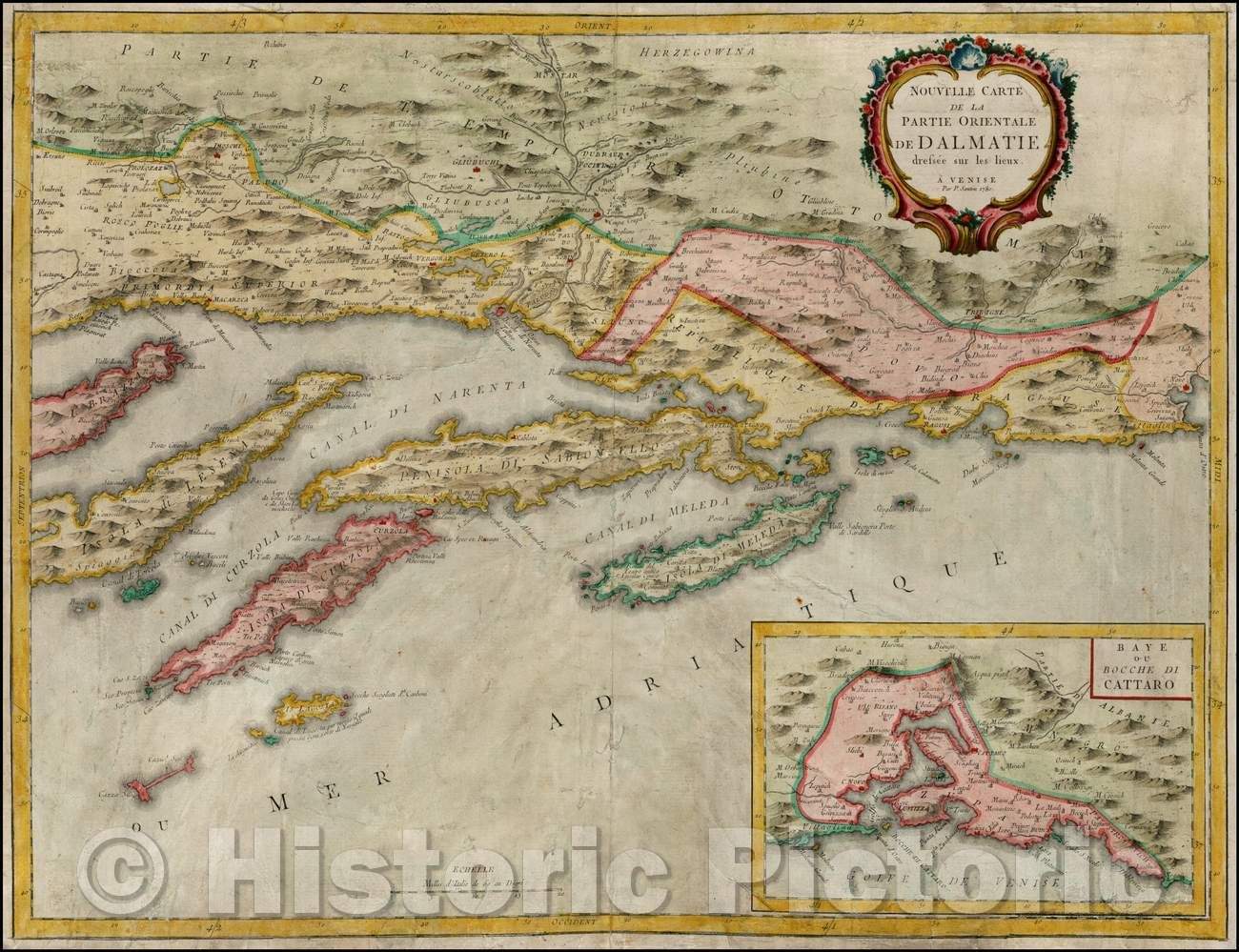 • .Historic Map - Nouvelle Carte de la Partie Orientale de Dalmatie, dressee sur les lieux :: Western part of Dalmatia, published by Santini in Venice, 1780 - Vintage Wall Art