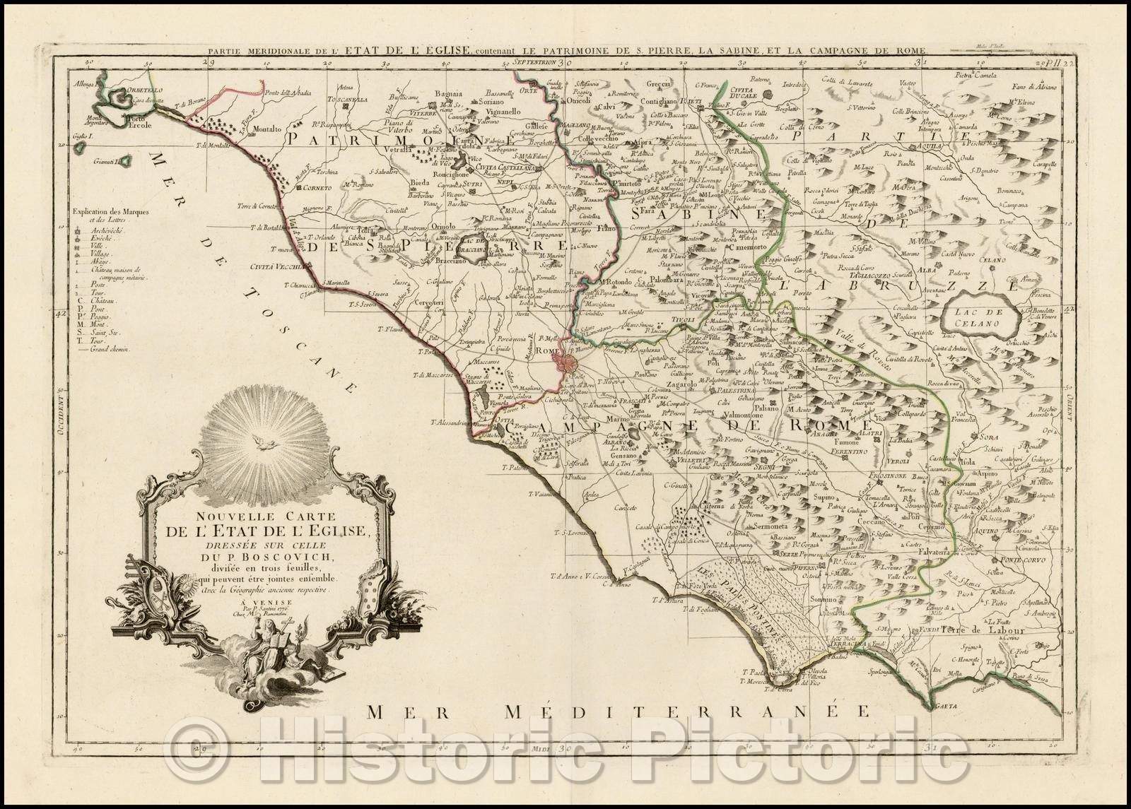 Historic Map - Nouvelle Carte De L'Etat de L'Eglise, Dressee Sur Celle Du :: Regional of the State of the Church and environs, Venice by Francois Santini, 1777 - Vintage Wall Art