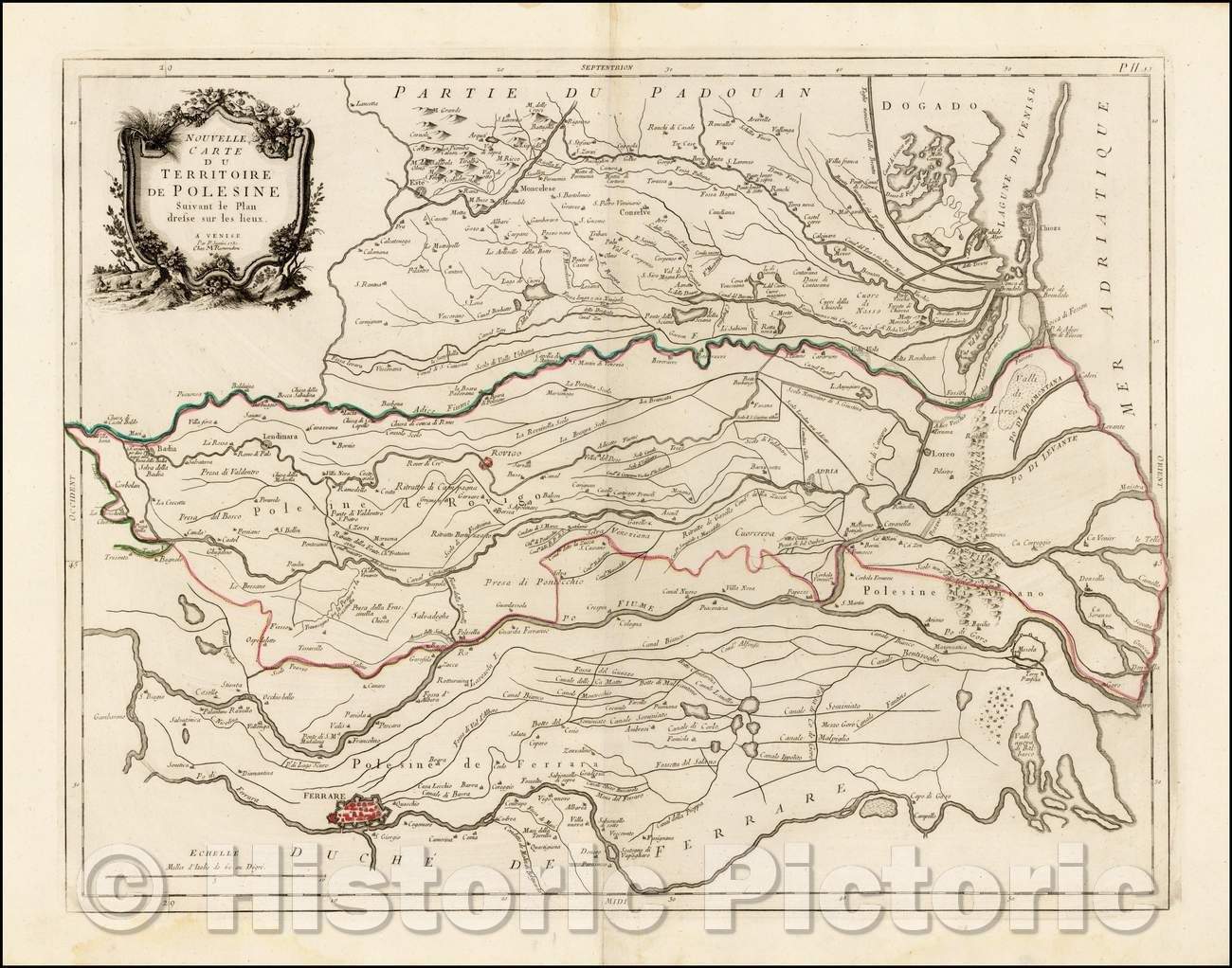 • Historic Map - Nouvelle Carte Du Territoire de Polesine Suivant le Pan :: Regional of the Territory of Polinse and environs, Venice by Francois Santini, 1777 - Vintage Wall Art