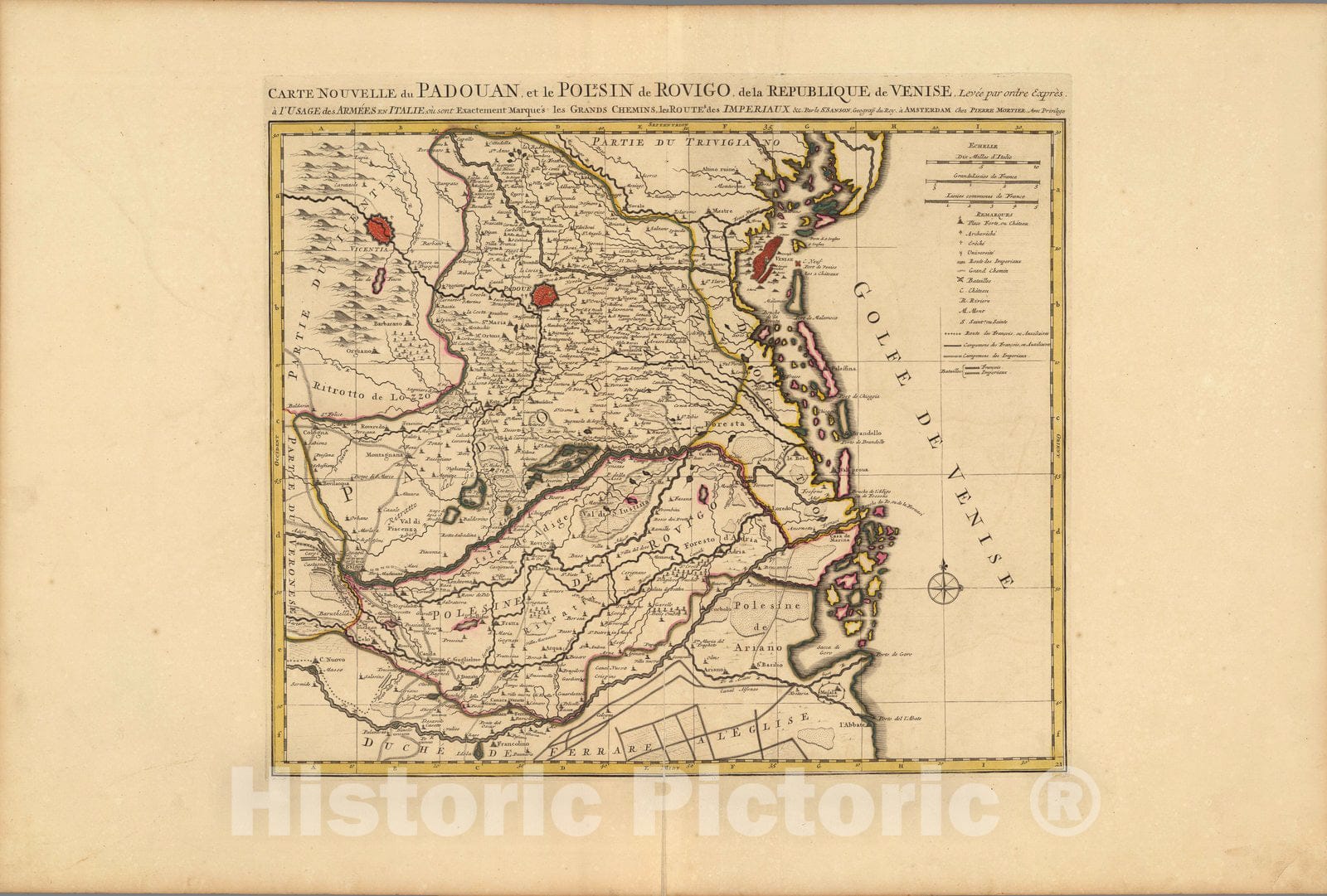 Historic Map : Venice (Italy)Carte Nouvelle du Padouan et le Polesin de Rovigo de la Republique de Venise. 1708 , Vintage Wall Art