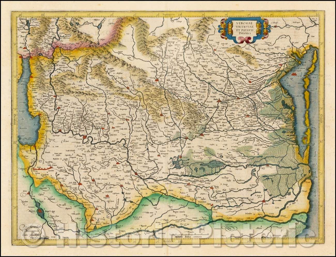 Historic Map - Veronae Vicentiae Et Patavia Dit. Shows Venice, 1619, Gerard Mercator - Vintage Wall Art