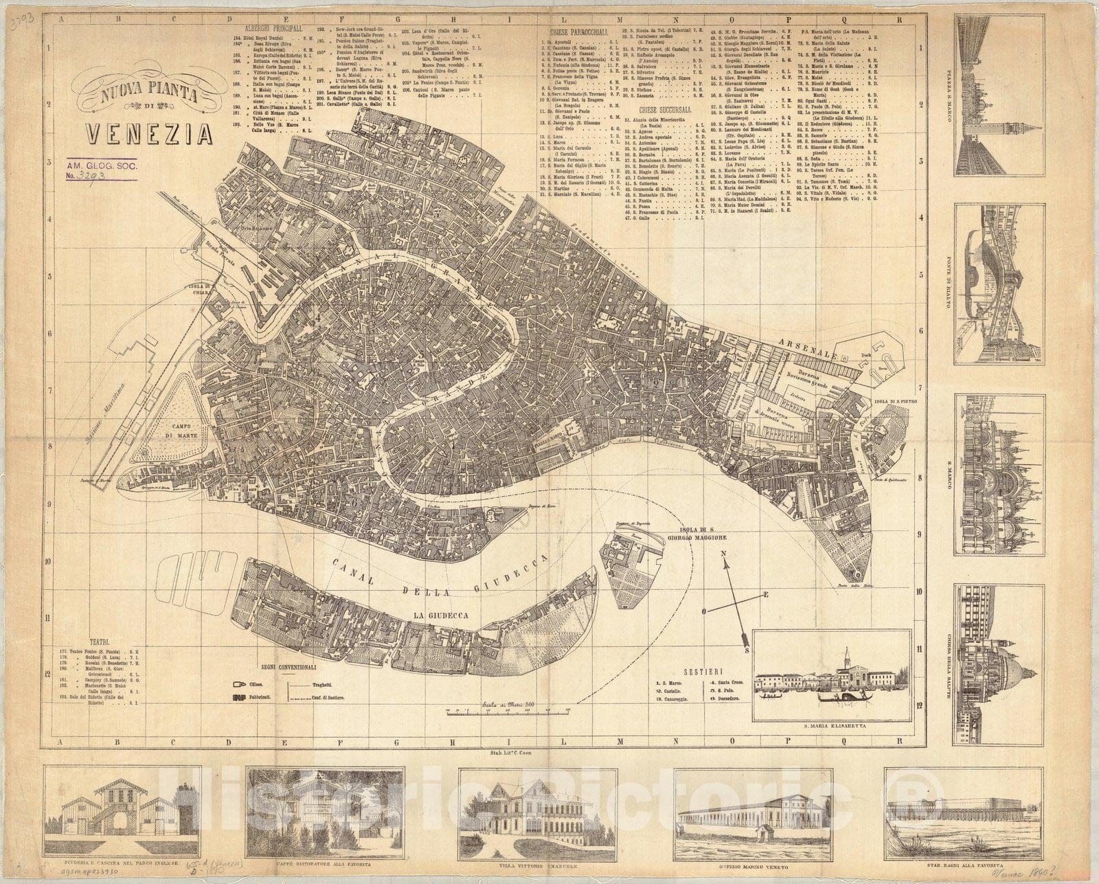 • .Map : Venice, Italy 1890, Nuova pianta di Venezia , Antique Vintage Reproduction