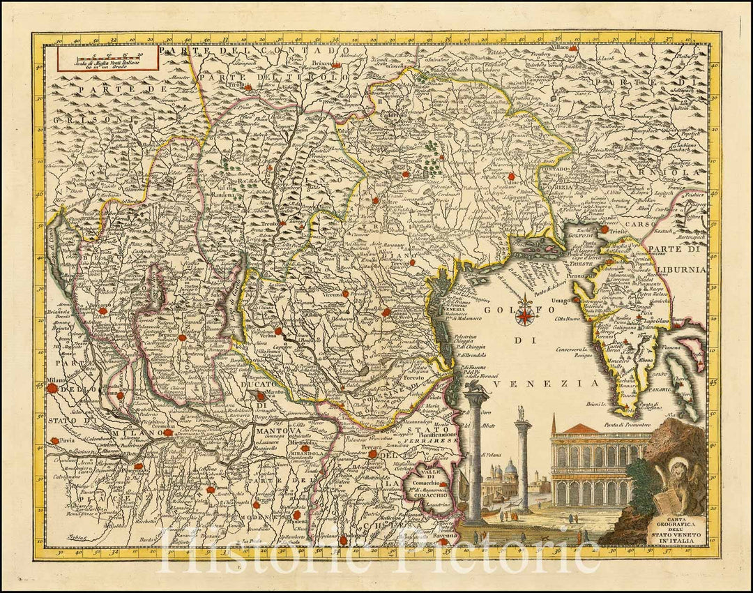 Historic Map - Carta Geografica Della Stato Veneto in Italia/Map of the State of Veneto, Venice, Padova, Verona, Udine, Vicenza and the Gulf of Venice, 1740 - Vintage Wall Art