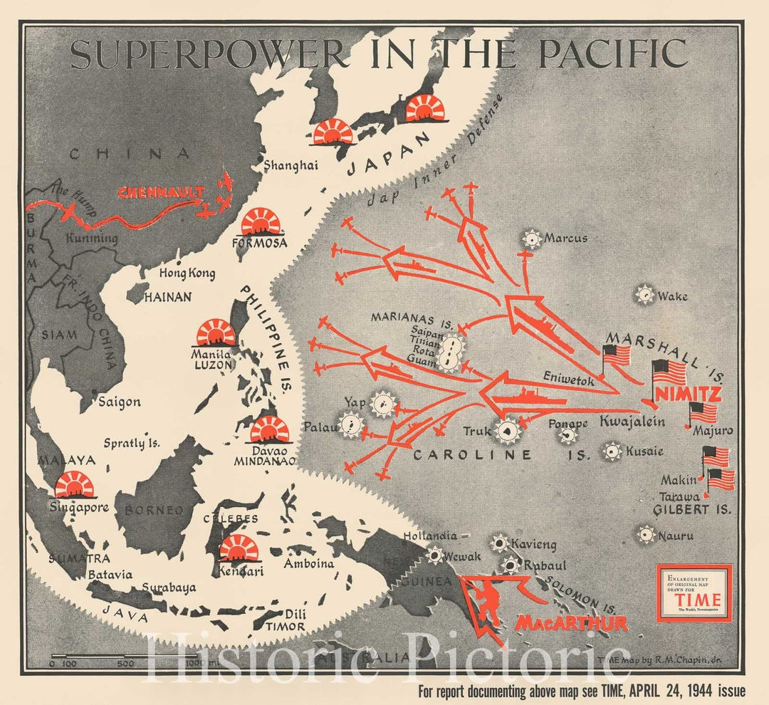 Historic Map : American Progress in The Pacific War During WWII, Chapin, 1944, Vintage Wall Art