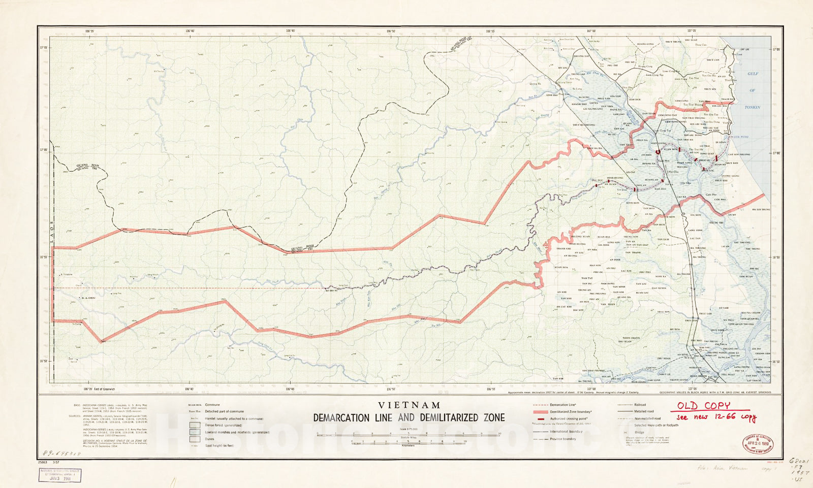 Historic 1957 Map - Vietnam Demarcation line and demilitarized Zone.