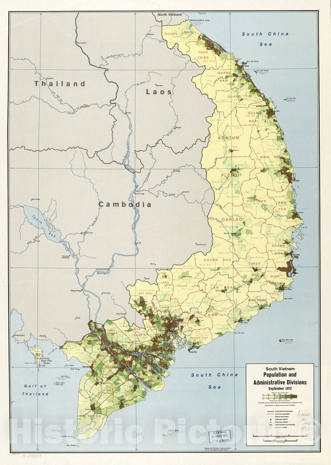 Historic 1973 Map - South Vietnam Population and Administrative divisions, September 1972. 3-73.