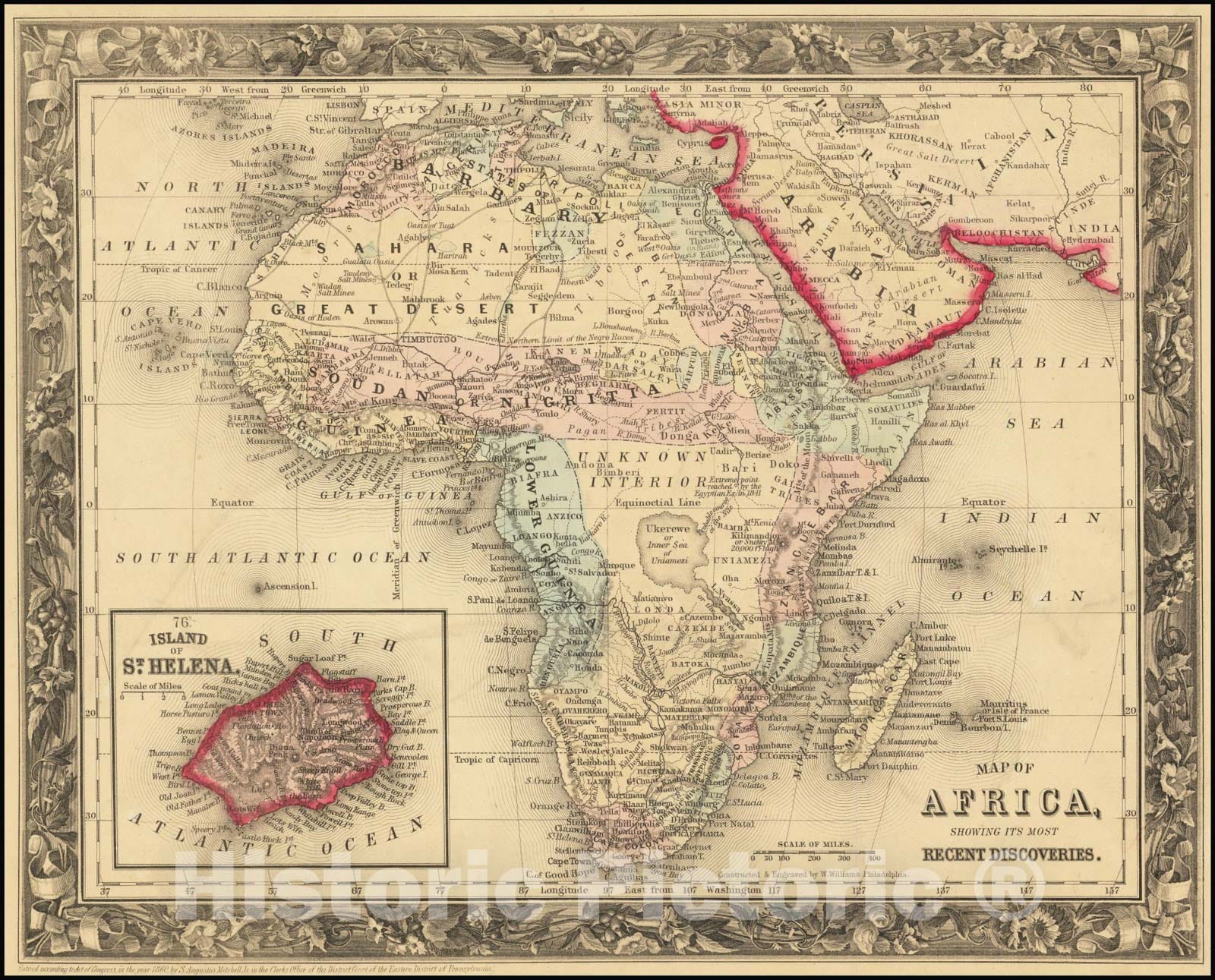Historic Map : Africa showing Its Most Recent Discoveries, 1860, Vintage Wall Art