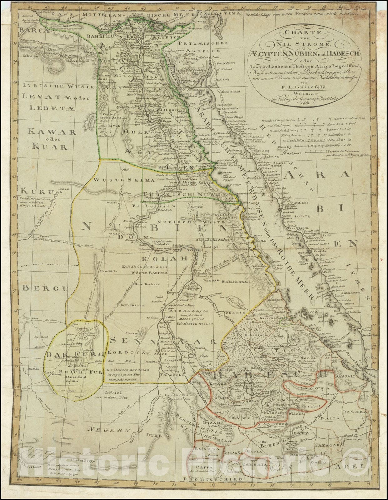 Historic Map : Charte vom Nil Strome, Aegypten, Nubien und Habesch, oder der nord-ostlichen Theil von Africa, 1804, 1797, Vintage Wall Art