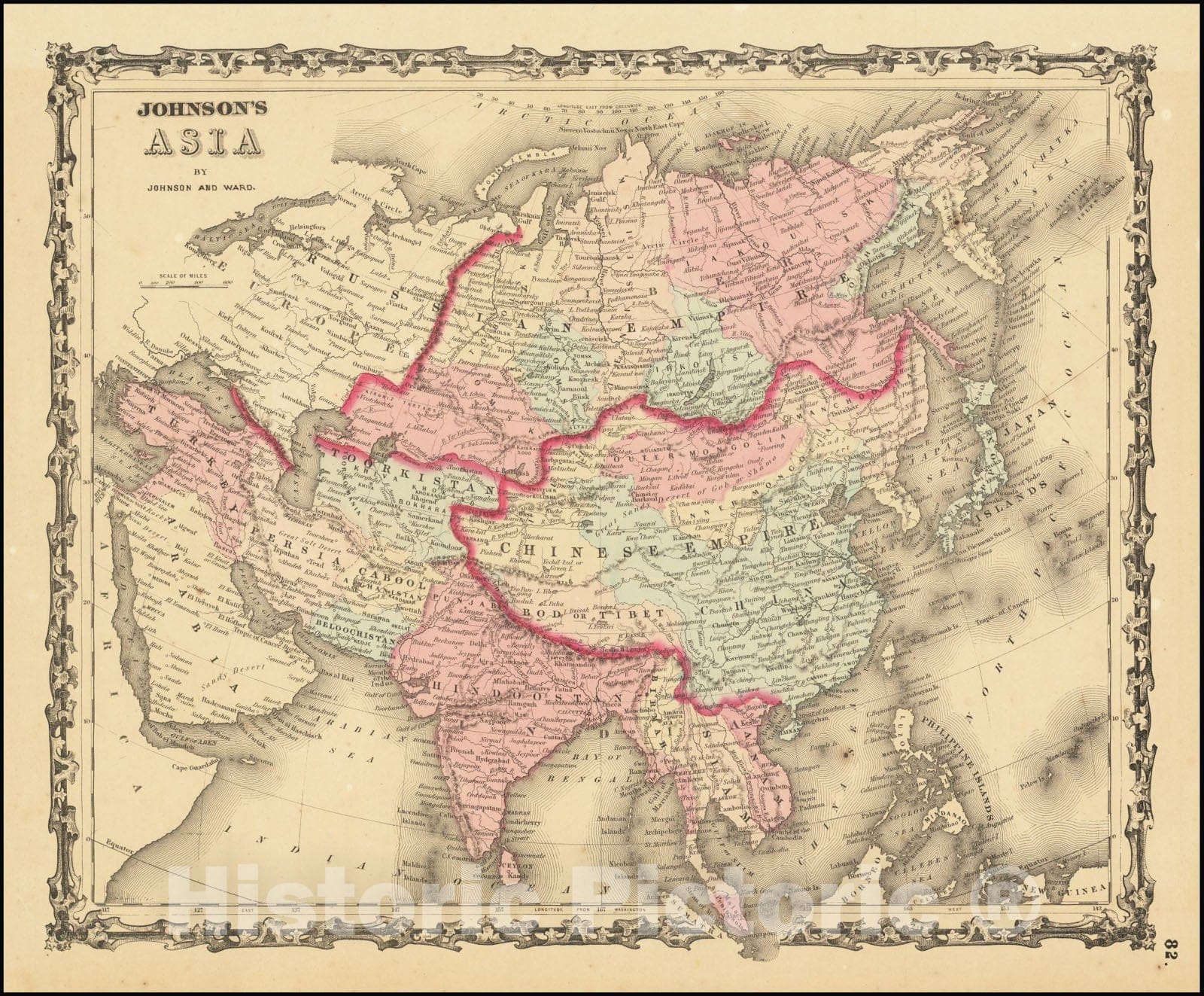 Historic Map : Johnson's Asia, 1860, Vintage Wall Art