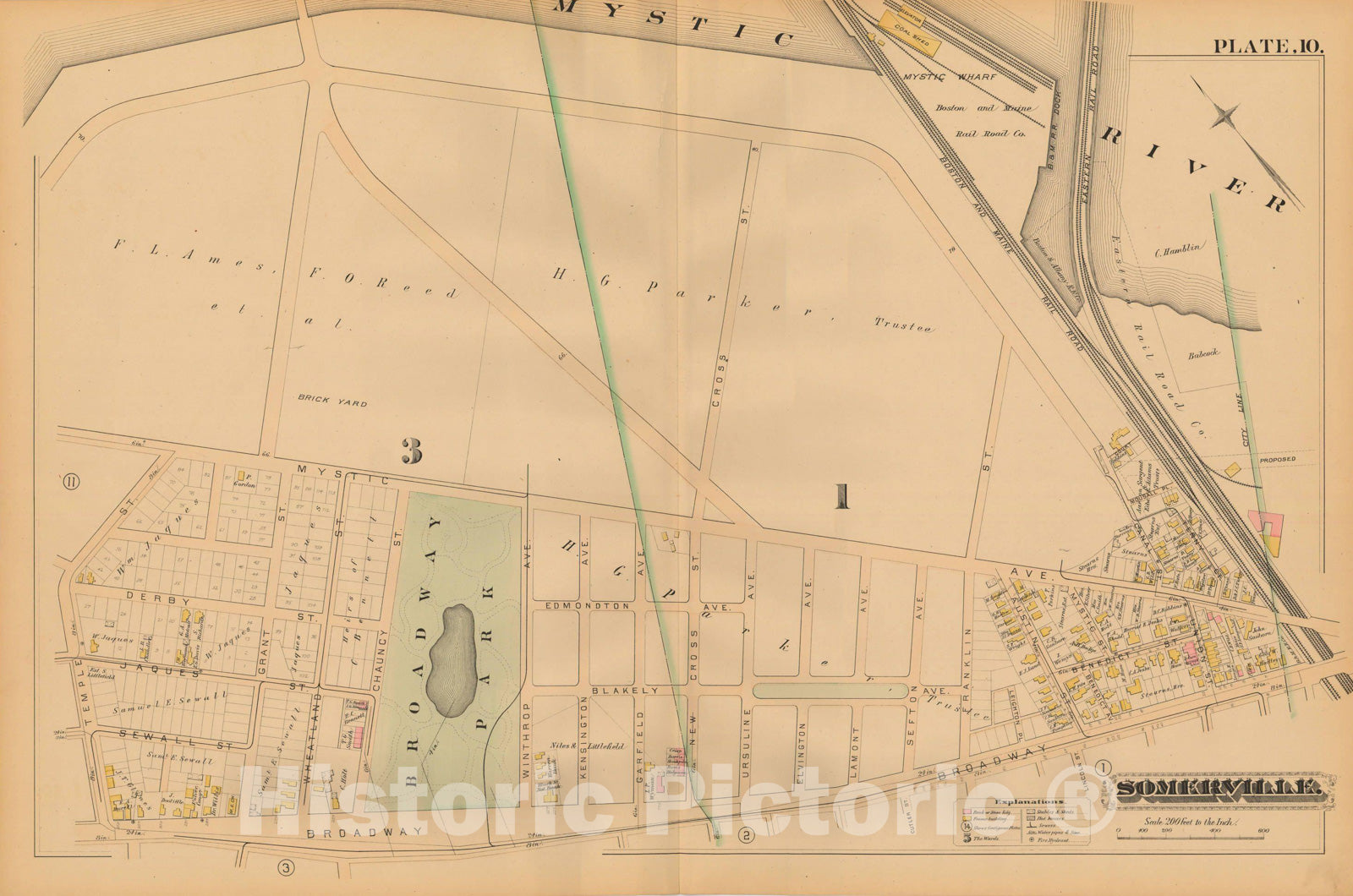 Historic Map : Atlas of Somerville Massachusetts, Somerville 1884 Plate 010 , Vintage Wall Art