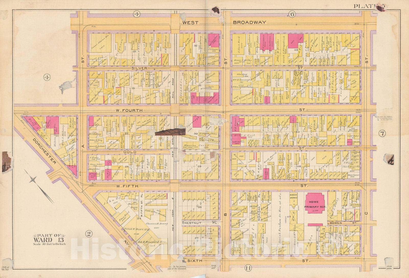 Historic Map : Atlas of South Boston, South Boston 1891 Plate 005 , Vintage Wall Art