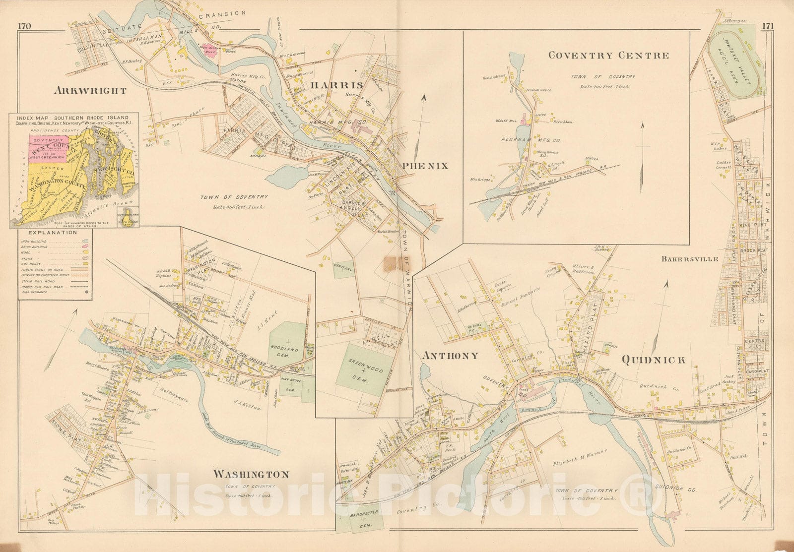 Historic Map : Atlas of Southern Rhode Island, Coventry 1895 , Vintage Wall Art