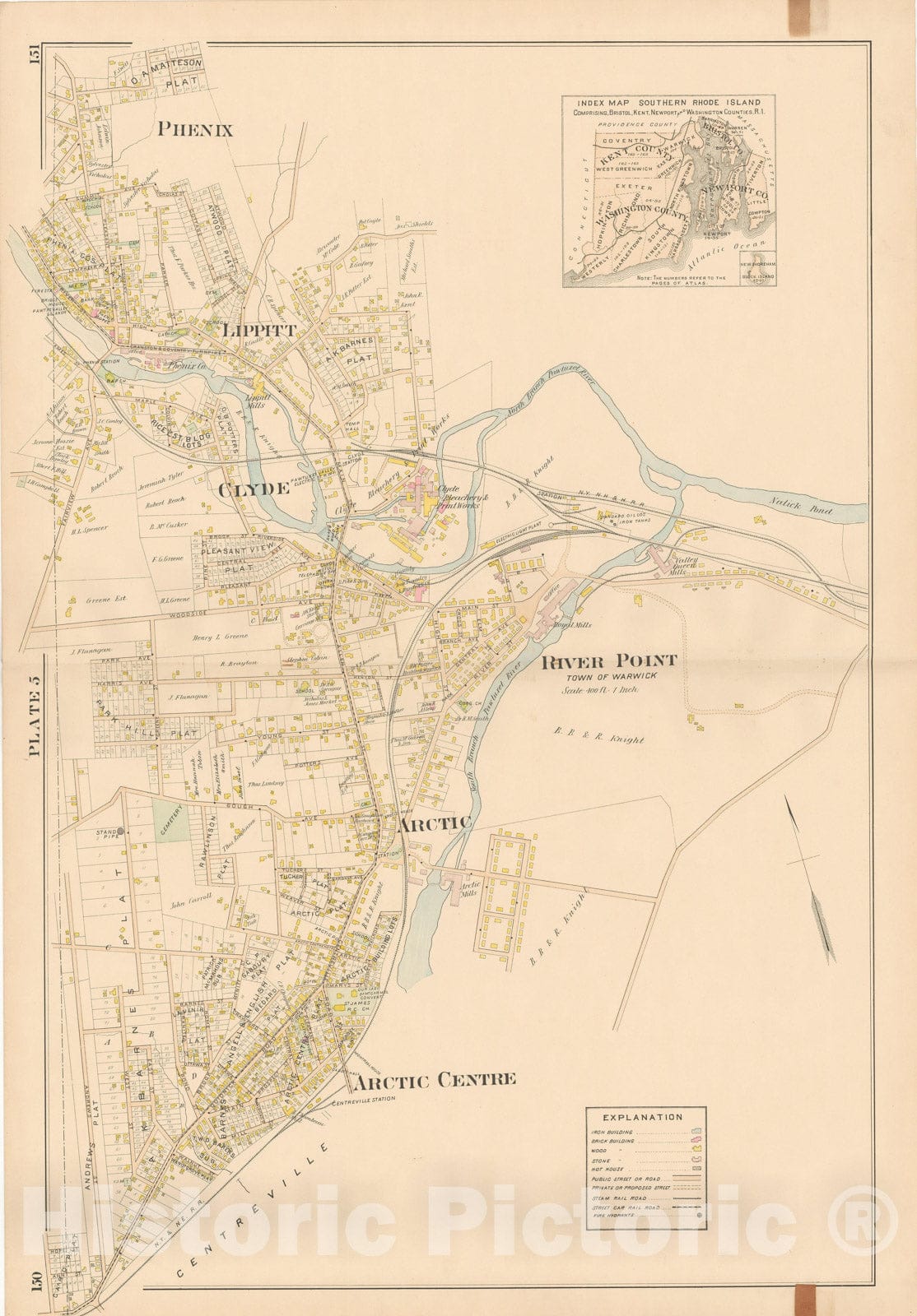 • .Historic Map : Atlas of Southern Rhode Island, Warwick 1895 Plate 005 , Vintage Wall Art