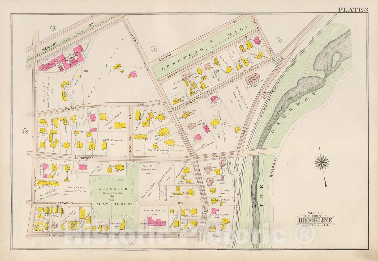 Atlas of The Town of Brookline, Brookline 1907 Plate 003